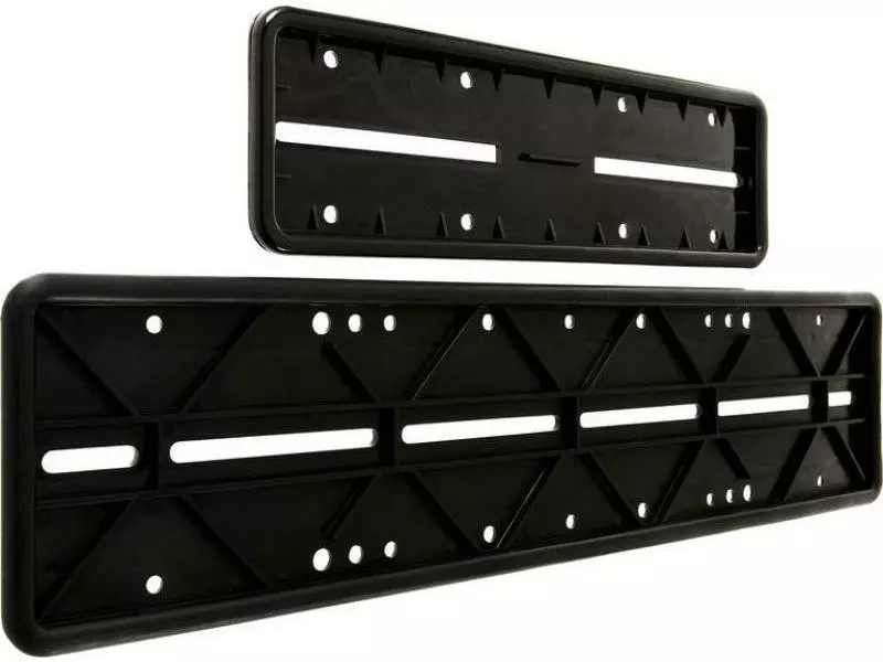 Mit diesen beiden Halterungen aus schwarzem Kunststoff befestigen Sie die amtlichen Kontrollschilder sicher an Ihrem Fahrzeug. Das Set enthält zwei Kennzeichenhalter sowie die zur Montage notwendigen Schrauben.