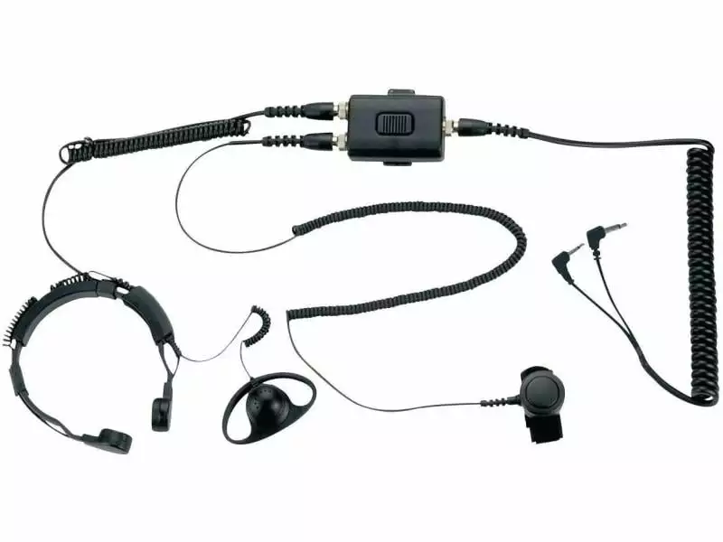 Dual-Kehlkopfmikrofon für den harten Geländeeinsatz und bei hohen Umgebungsgeräuschen. Die Steckverbindungen sind modular aufgebaut. Das Mikrofon verfügt über eine grosse PTT mit rotierendem Clip und ein separater Finger-PTT.