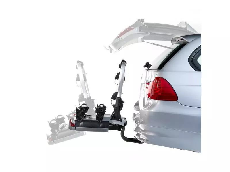 Grossflächige Rückleuchten in moderner Klarglas-Ptik. Seitlicher Unterfahrschutz mit Doppelfunktion: Sicherheit und Fortsetzung der dynamischen Linie des Fahrzeuges. Abklappbarer Aluminium-Bügel mit abnehmbaren Abstandhaltern. Auch der leichtgängige Rollenauszug setzt einen neuen Masstab in Sachen Komfort und Bedienbarkeit selbst in beladenem Zustand.