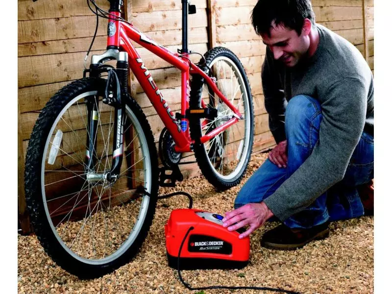 Der ASI300 von BLACK+DECKER ist ein kompakter Kompressor, der über die 12-V-Buchse am Fahrzeug über den Zigarettenanzünder oder mit 220 V Hausstrom betrieben werden kann. Dadurch ergeben sich vielfältige Möglichkeiten der Anwendungen, wie für Autoreifen, Luftmatratzen, Bälle und vieles mehr. Der Kompressor kann einen Luftdruck von bis zu 11 bar oder 160 PSI aufbauen.