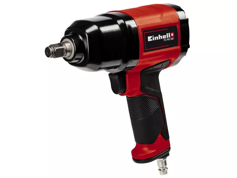 Der Einhell Druckluft-Schlagschrauber TC-PW 340 nimmt sich der Arbeiten in Heim, Werkstatt und Garage kraftvoll an. Der Schlagschrauber hat ein maximales Drehmoment von 340 Nm. Dabei sorgt der rutschfeste gummierte Griff in jeder Situation für sicheres und angenehmes Arbeiten. Ausgestattet mit Links- (einstufig) und Rechtslauf (dreistufig), stellt sich der Druckluft-Schlagschrauber einer Vielzahl von Aufgaben. Beste Performance bietet der Schlagschrauber dabei ab einem Schlauchinnendurchmesser von 9 Millimeter. Der maxmimale Arbeitsdruck beträgt 6.3 bar, die maximale Gewindegrösse 14 Millimeter. Zum Ausstattungsumfang gehören 8x Stecknüsse in den gängigen Grössen 8/10/11/13/17/19/21/22 mm sowie 1x Ölfläschchen und 1x Stecknippel. So ist der Druckluft-Schlagschrauber TC-PW 340 von Einhell sofort einsatzbereit. Die Lieferung erfolgt im praktischen Transport- und Aufbewahrungskoffer.