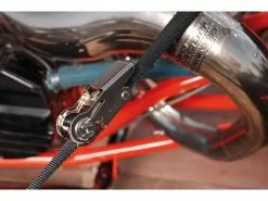 Für den sicheren Fahrradtransport auf einem Pick-up. Das Fahrrad ist sicher befestigt, wodurch Schäden an der Heckklappe des Fahrzeugs verhindert werden.
