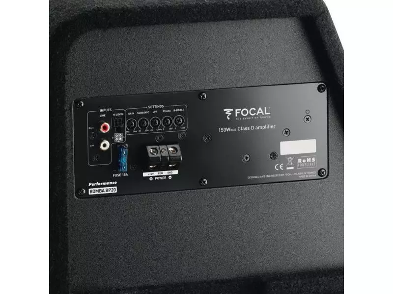 Der BombA BP20 von Focal ist ein kompakter Bassreflex-Subwoofer mit Bandpass-Technologie, MDF-Aussenhülle und einem Konus aus Glasfasern. Er sorgt für tiefe und kontrollierte Bassfrequenzen. Ausserdem bietet der eingebaute D-Klassen-Verstärker eine hohe Belastbarkeit und zahlreiche Steuerungen.