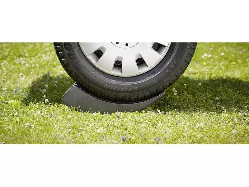 Stufenloser Höhenausgleich und reifenschonender Stand. In seiner Form ist der Rundkeil perfekt abgestimmt auf die Rundung des Fahrzeugreifens. Homogenes Auffahren. Sicheres Parken. Zugelassen bis zu einem Reifendurchmesser von ca. 70 cm. Perfekte Lastverteilung von oben, wodurch der Rundkeil nicht wegrutschen kann. Es wird keine Auffahrhilfe benötigt. Achtung Schürzenhöhe mindestens 28 cm!