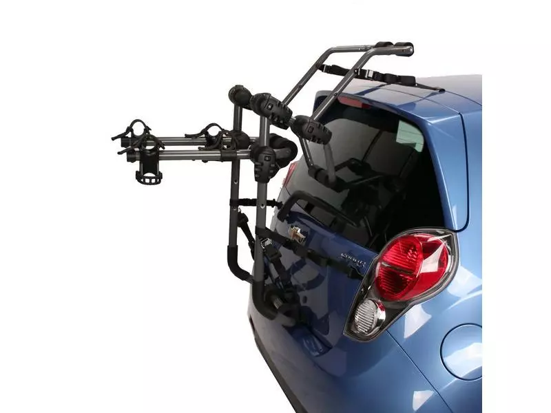 Der neue Over-the-Top Fahrradträger von Hollywood Racks verfügt über einen in der Höhe verstellbaren Rahmen, so kann der Gurtkontakt mit dem Spoiler verhindert werden. Inklusive abnehmbarer Haken und Sicherheitsschnallen zur sicheren Befestigung an Kofferraum, Glasklappen und Dachträgerschienen. Passt auch für die meisten Fahrzeuge ohne Heckspoiler.