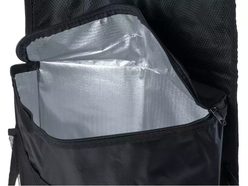 - Drei Getränketaschen, zwei Netztaschen, grosse Tasche und Isolierfach mit Reisverschluss