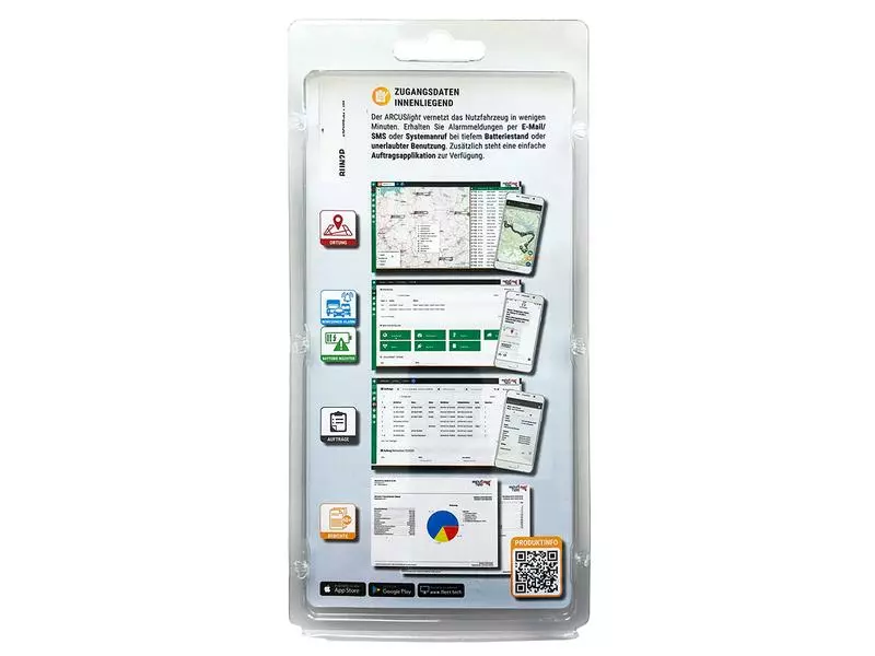 Dank der äusserst einfachen Installation und der integrierten SIM-Karte vernetzt der ARCUSlight Nutzfahrzeuge wie Transporter, LKW oder Baumaschinen in wenigen Minuten. Einmal installiert, können Alarme über die Nutzung des Fahrzeugs ausserhalb definierter Zeitfenster, das Betreten und/oder Verlassen von Geozonen sowie Probleme mit der Fahrzeugbatterie unmittelbar alarmiert werden. Dabei können die Alarmmeldungen sowohl als SMS, E-Mail oder als Systemanruf aktiviert werden.