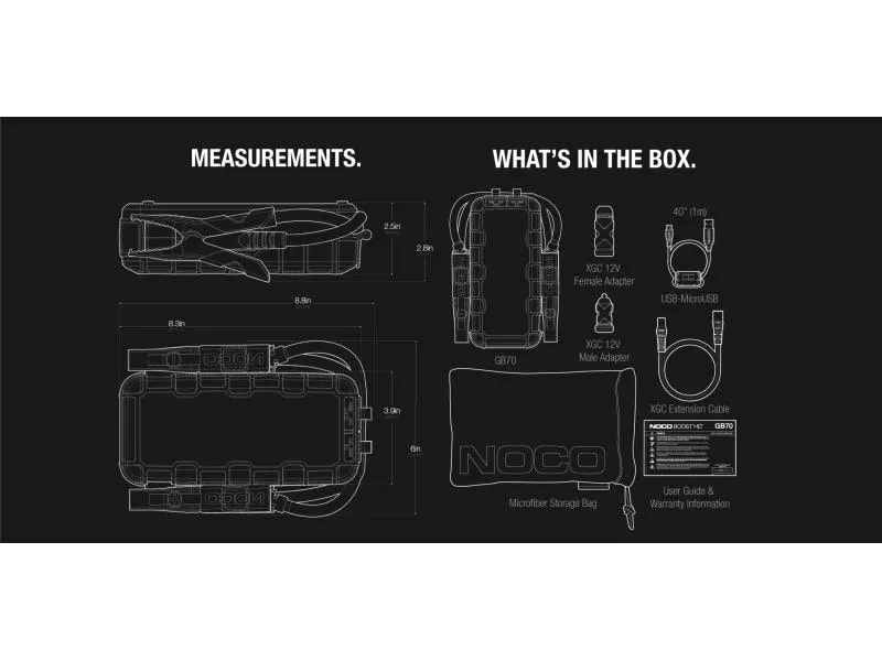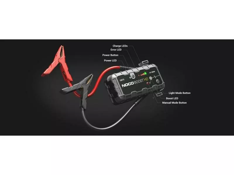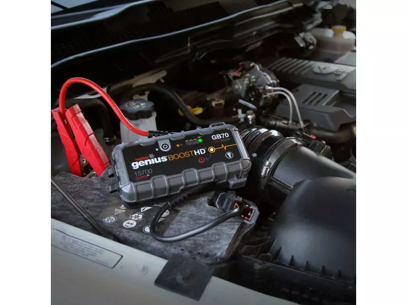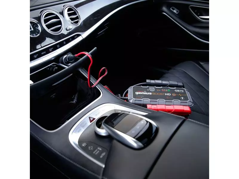 Dank des Noco Genius GB70 ist eine leere Startbatterie künftig kein Grund mehr, den Weg ins Geschäft mit dem ÖV antreten zu müssen oder einen Techniker des Automobilclubs aufzubieten. Auch auf die Starthilfe durch hilfsbereite Mitmenschen sind Sie in einer solchen Situation nicht mehr angewiesen: Verbinden Sie einfach die Starthilfe-Klemmen mit den entsprechenden Punkten Ihres Fahrzeuges und starten Sie wie gewohnt den Motor.