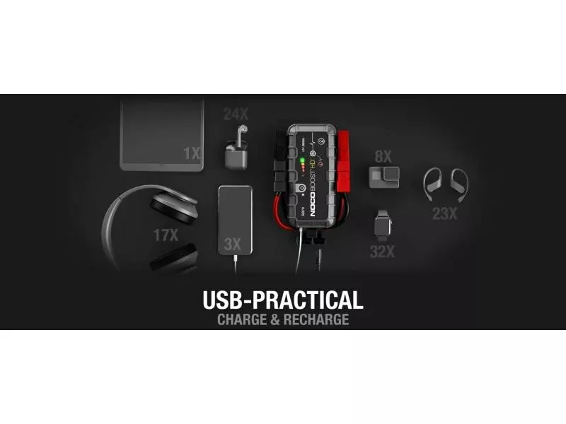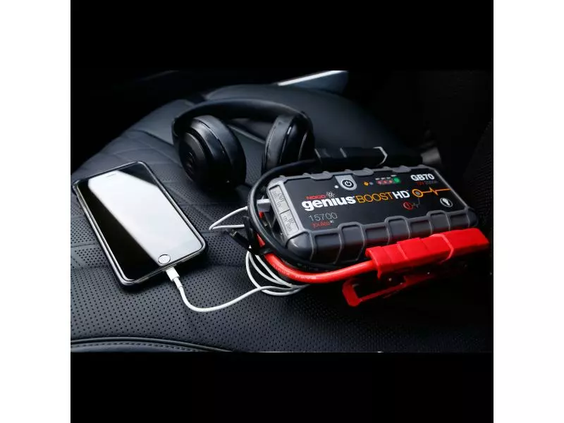 Ein Smartphone ohne Strom ist ebenso unpraktisch wie ein Auto, das nicht fährt. Deshalb haben Sie mit dem Noco Genius GB70 die Möglichkeit nahezu alle mobilen Geräte per 2,1 Ampere USB-Anschluss mit Strom zu versorgen. Zusätzlich steht Ihnen für die Spannungsversorgung von Kompressoren, Autostaubsaugern und ähnlichen Gadgets ein 12-Volt-Zigarettenanzünderbuchse zur Verfügung, die Sie mit maximal 15 Ampere belasten können.