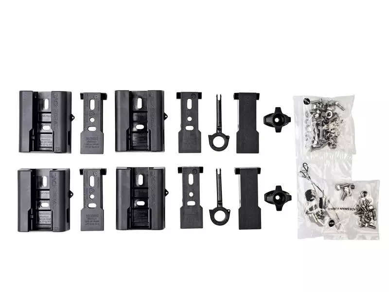 - Schnellkupplungen-Satz für alle gängigen Dachgepäckträger inkl. Wandhalterung