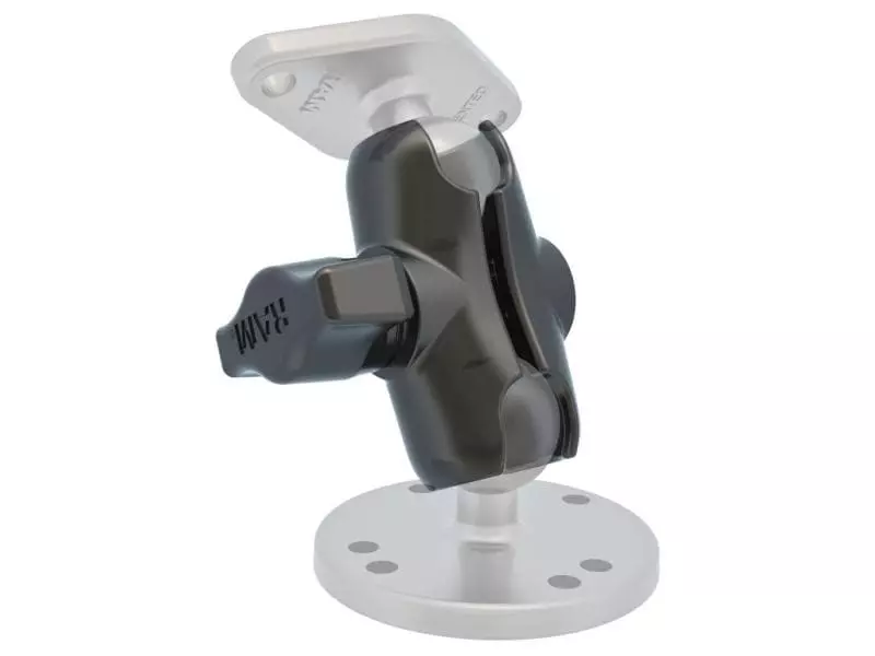 Das Halterungssystem vom «RAM Mount» ist modular aufgebaut. Jede Halterung besteht aus einer Basis (Base), einem Arm und einem Kopfteil (Top). Je nach Halterung werden diese miteinander verschraubt, meist aber über ein Kugelgelenk zusammengesteckt. Dies bietet Flexibilität in der Ausrichtung, sorgt aber zusammen mit dem Material für einen schock- und vibrationsdämpfenden Effekt.