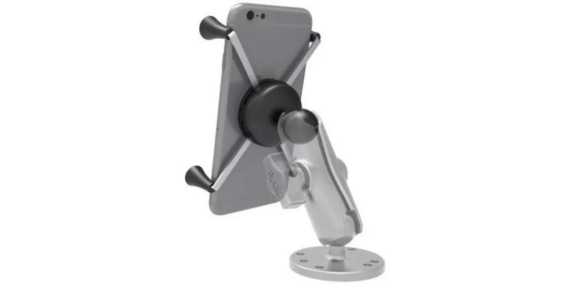 Das Halterungssystem vom «RAM Mount» ist modular aufgebaut. Jede Halterung besteht aus einer Basis (Base), einem Arm und einem Kopfteil (Top). Je nach Halterung werden diese miteinander verschraubt, meist aber über ein Kugelgelenk zusammengesteckt. Dies bietet Flexibilität in der Ausrichtung, sorgt aber zusammen mit dem Material für einen schock- und vibrationsdämpfenden Effekt.