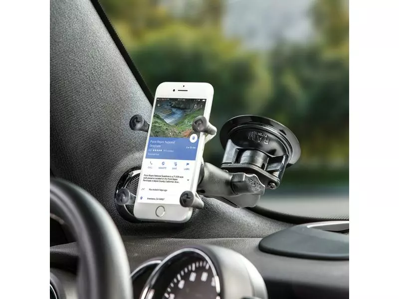 Die Universalhalterung von «RAM Mount» besteht aus einer Saugnapf-Basis, einem Verbindungsarm und der X-Grip Universal-Halterung als Kopfteil. Der Saugnapf hält ideal an glatten Glas- sowie Plastikoberflächen und hält Geräte mit einer Höhe von max. 2.2 cm sowie einer Länge und Breite von 4.76 bis 8.25 cm. Die Gummibeschichtung der Halterung verhindert das verrutschen des Gerätes auch bei starken Vibrationen.