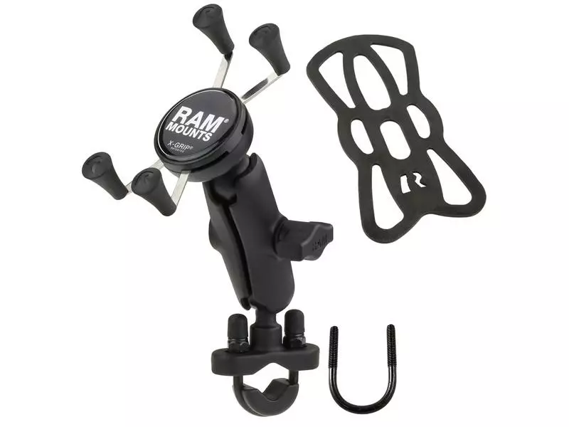 Die Universalhalterung von «RAM Mount» besteht aus einer Lenkradstangen-Basis, einem Verbindungsarm und der X-Grip Universal-Halterung als Kopfteil. Die Halterung kann an Stangen von 1.27 bis 3.18 cm befestigt werden und hält Geräte mit einer Höhe von max. 2.2 cm sowie einer Länge und Breite von 4.76 bis 8.25 cm. Die Gummibeschichtung der Halterung verhindert das verrutschen des Gerätes auch bei starken Vibrationen.