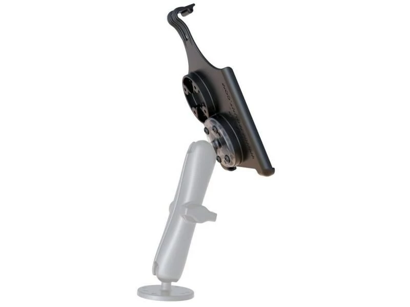 Das Halterungssystem vom «RAM Mount» ist modular aufgebaut. Jede Halterung besteht aus einer Basis (Base), einem Arm und einem Kopfteil (Top). Je nach Halterung werden diese miteinander verschraubt, meist aber über ein Kugelgelenk zusammengesteckt. Dies bietet Flexibilität in der Ausrichtung, sorgt aber zusammen mit dem Material für einen schock- und vibrationsdämpfenden Effekt.