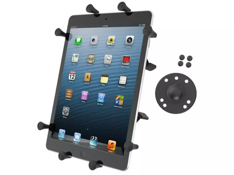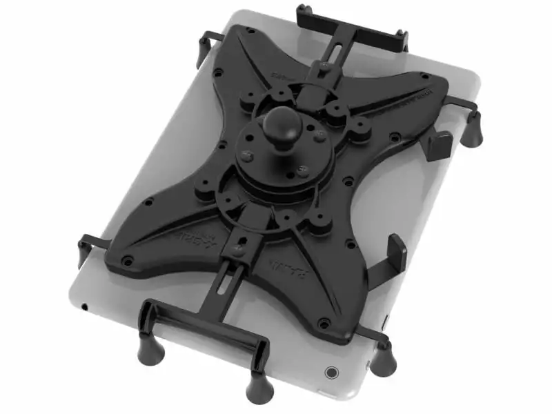 Das Halterungssystem vom «RAM Mount» ist modular aufgebaut. Jede Halterung besteht aus einer Basis (Base), einem Arm und einem Kopfteil (Top). Je nach Halterung werden diese miteinander verschraubt, meist aber über ein Kugelgelenk zusammengesteckt. Dies bietet Flexibilität in der Ausrichtung, sorgt aber zusammen mit dem Material für einen schock- und vibrationsdämpfenden Effekt.