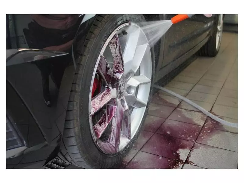 Hochwirksamer säurefreier Spezialreiniger für alle Stahl- und Leichtmetallfelgen. Entfernt mühelos selbst hartnäckigste Verschmutzungen wie eingebrannten Bremsstaub, Öl- und Gummirückstände sowie sonstigen Strassenschmutz von allen Stahl- und Leichtmetallfelgen. Felgenreiniger mit innovativem Wirkindikator. ph-Wert 7. NICHT in automatischen Waschanlagen verwenden.