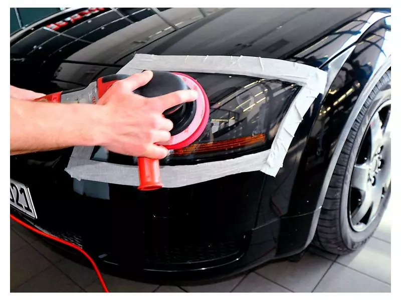 Harte hochdichte Schwammscheibe mit Klettbefestigung zum maschinellen Polieren von stark verkratzten und verwitterten Lacken mit Schleifpolituren und Schleifpasten.