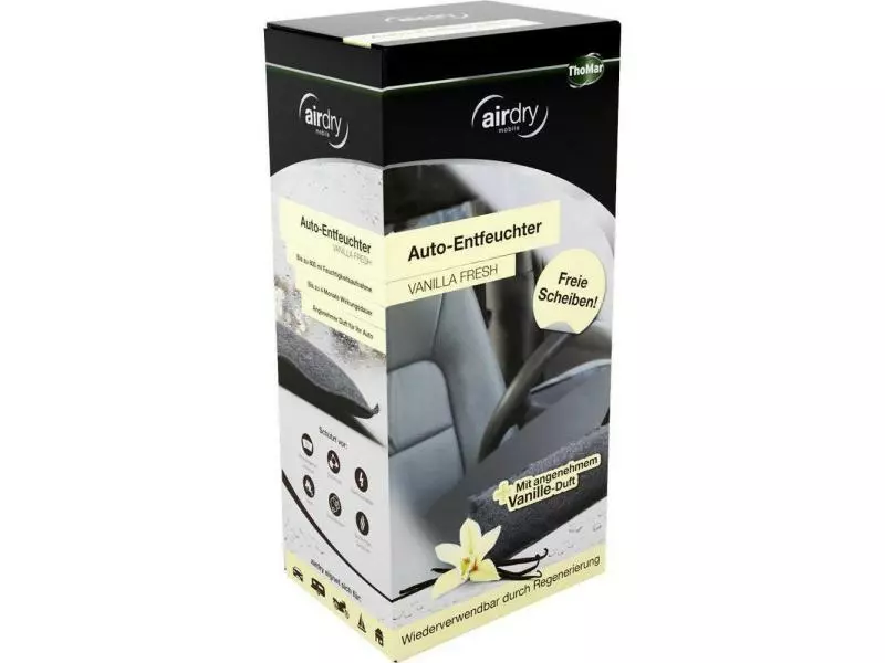 Bis zu 4 Monate wird Ihr Fahrzeug von Feuchtigkeit befreit und mit einem frischen Duft versorgt. Dabei zieht der airdry Autoentfeuchter die Luftfeuchtigkeit aus dem Innenraum und nimmt diese in seinem Wirkgranulat auf. Ein Autoentfeuchter-Kit kann bis zu 800 ml Wasser aufnehmen und dabei gleichzeitig einen angenehmen Vanilleduft verströmen, sodass schlechte Gerüche im Fahrzeug der Vergangenheit angehören. Die aufgenommene Feuchtigkeit wird dabei sicher im Inneren des Wirkgranulats gehalten, damit nichts auslaufen kann. Der Autoentfeuchter kann durch das Trocknen auf der Heizung wieder regeneriert werden.