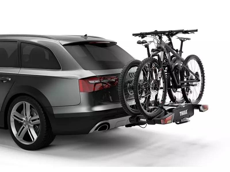 Einfache Befestigung der Fahrräder durch abnehmbare Fahrradhaltearme mit abschliessbaren Thule AcuTight Drehzementbegrenzer-Knöpfen, die klicken, wenn das optimale Drehmoment erreicht ist. Grosser Abstand zwischen den Felgenhaltern sorgt für einen «reibungslosen» Fahrradtransport. Extra lange Felgenhaltebänder mit Ratschenfunktion gestatten die einfache Befestigung von Rädern (Radbreite bis 4.7 Zoll), wodurch der Transport von Fatbikes ermöglicht wird. Praktischer Abklappmechanismus mit Fusspedal ermöglicht einfachen Zugang zum Kofferraum, selbst mit Fahrrädern auf dem Träger