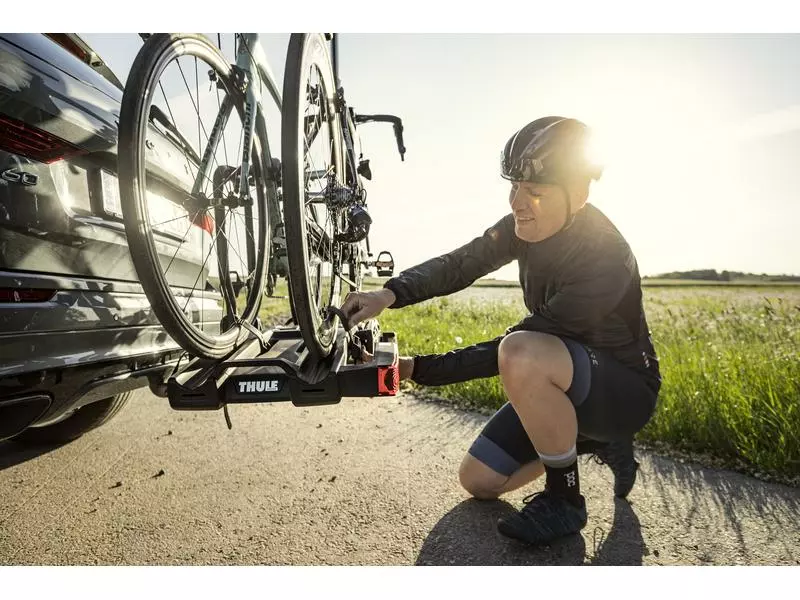 Der komplett zusammenklappbare, kompakte und benutzerfreundliche Anhängerkupplungs-Fahrradträger für Fahrräder jeder Art mit exakter Passform für FIX4BIKE-Anhängerkupplungen.